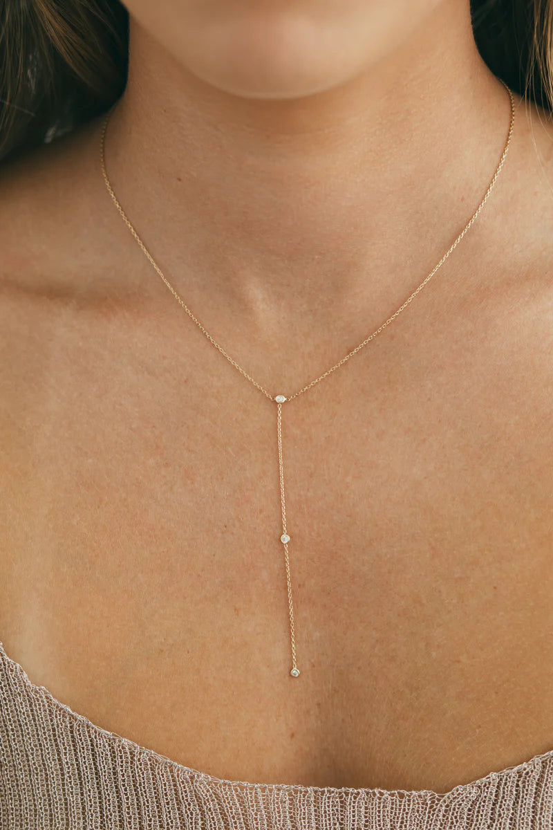 JJ x Chantel Carreira Gold Mirror Chain Lariat Necklace