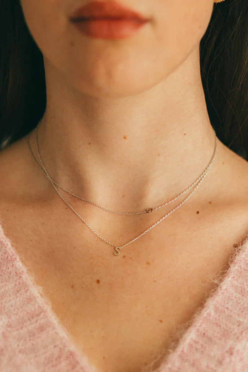 Diamond Initial and Diamond Bezel Necklace