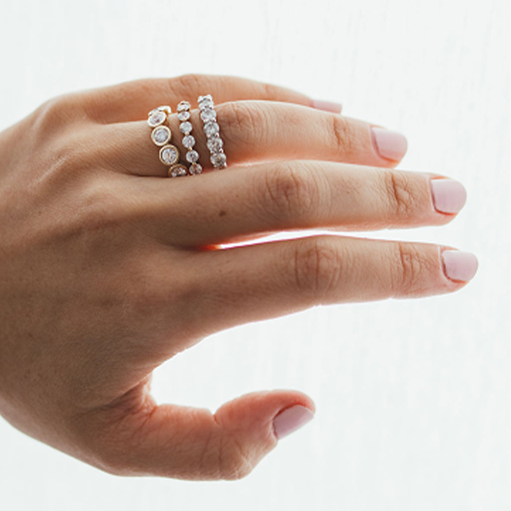 Designed to mix, match, and layer. Our stacking rings come in 10K and 14K gold, with delicate diamonds, subtle textures, and versatile silhouettes for endless combinations.